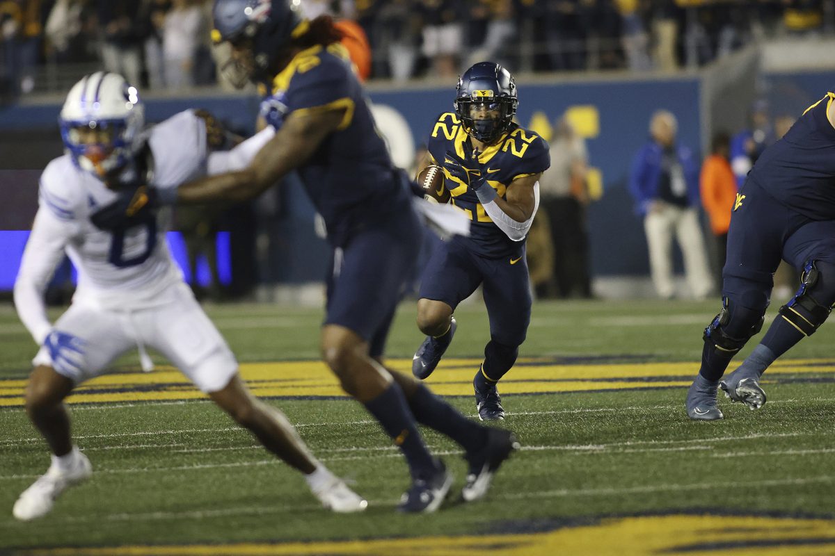 MORGANTOWN, W.Va. (AP) – The muscle of 240-pound CJ Donaldson and quick bursts from freshman Jahiem White proved to be too much for BYU.