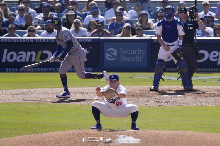 LOS ANGELES — Francisco Lindor and Mark Vientos homered as the New York Mets stopped the Los Angeles Dodgers' record-tying postseason scoreless streak in a 7-3 victory Monday, tying the NL Championship Series at a game apiece.