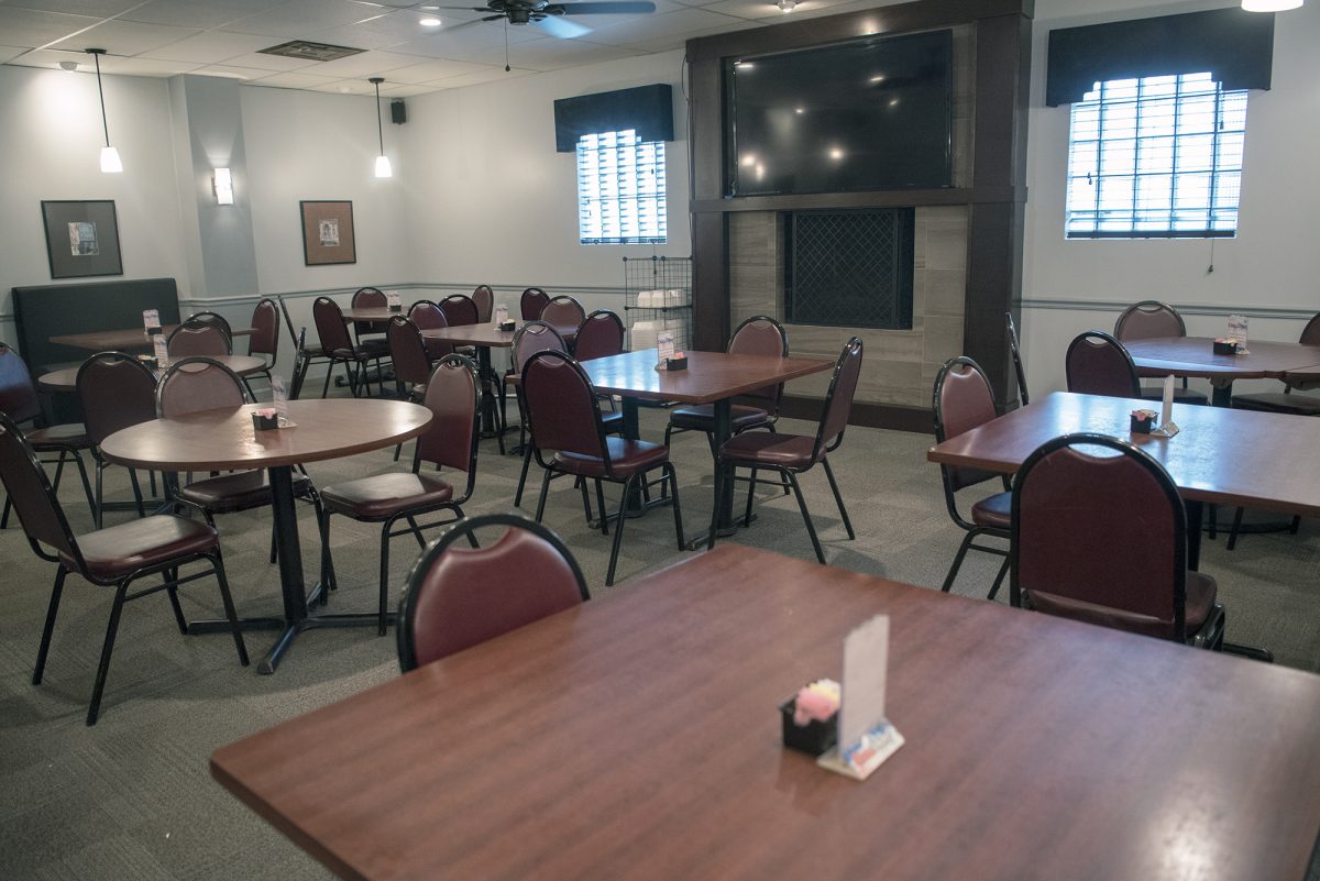 The gas fireplace and 72-inch TV are focal points of the newly renovated dining room at Al an’ Ruben’s.