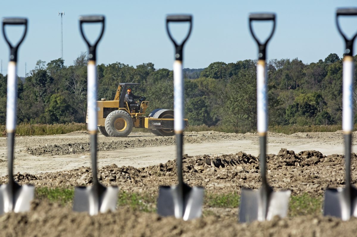 CHARLEROI – The groundbreaking was purely ceremonial Thursday afternoon. The gaggle of earthmovers navigating behind them had, literally, broken ground beforehand and continued to operate as the event unfolded.