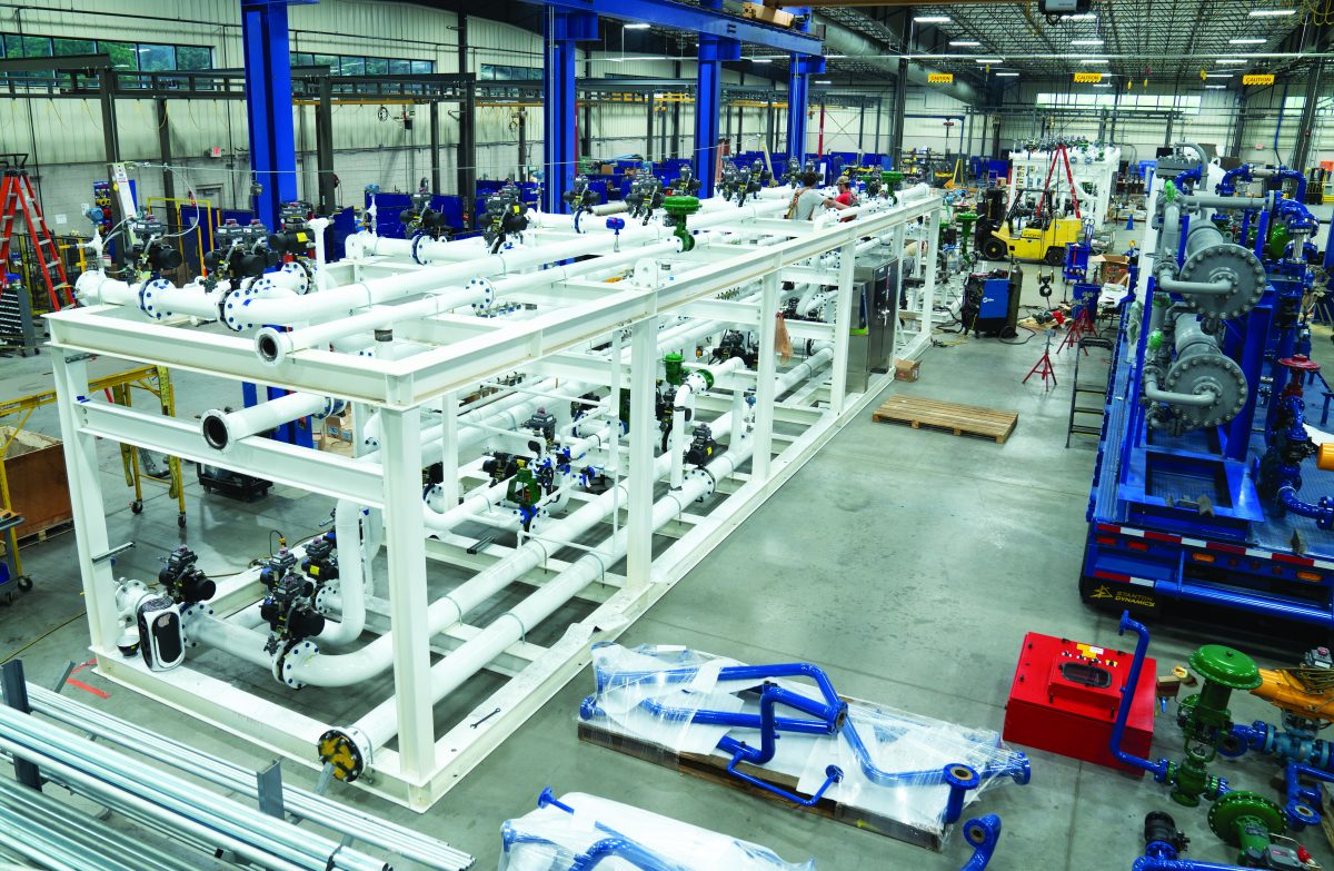 Actually, it is a brain center-plus, where Smith said, “there is a lot of skilled labor.” The center, according to ECI.us, provides “flexible work areas designed for efficient workflows — and growth; increased lifting capabilities for larger projects; optimized warehouse storage; increased inventory capacity; and advanced technologies, including a robotic welder.” There also is a skid fabrication shop.