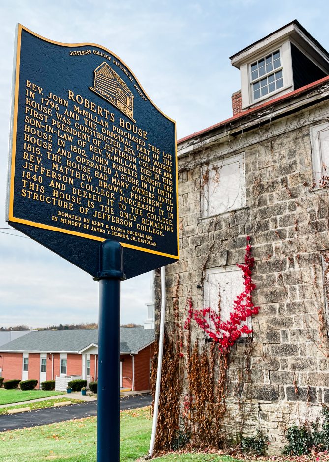 The house is the last remaining building associated with Jefferson College, which went on to become Washington & Jefferson College in Washington. Its notable residents include John Canon, founder of Canonsburg; Rev. John McMillan, founder of Chartiers Hill United Presbyterian Church; and John Roberts, who ran a general store out of the home.