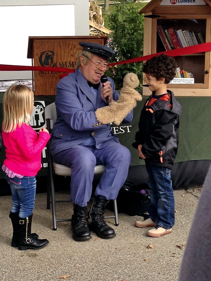 EIGHTY FOUR – Much to the delight of the youngsters in attendance, David Newell, best known as Mr. McFeely of “Mister Rogers’ Neighborhood,” recently made a “Speedy Delivery” to help Community Action Southwest launch its latest initiative: a literacy awareness project known as Little Free Libraries.
