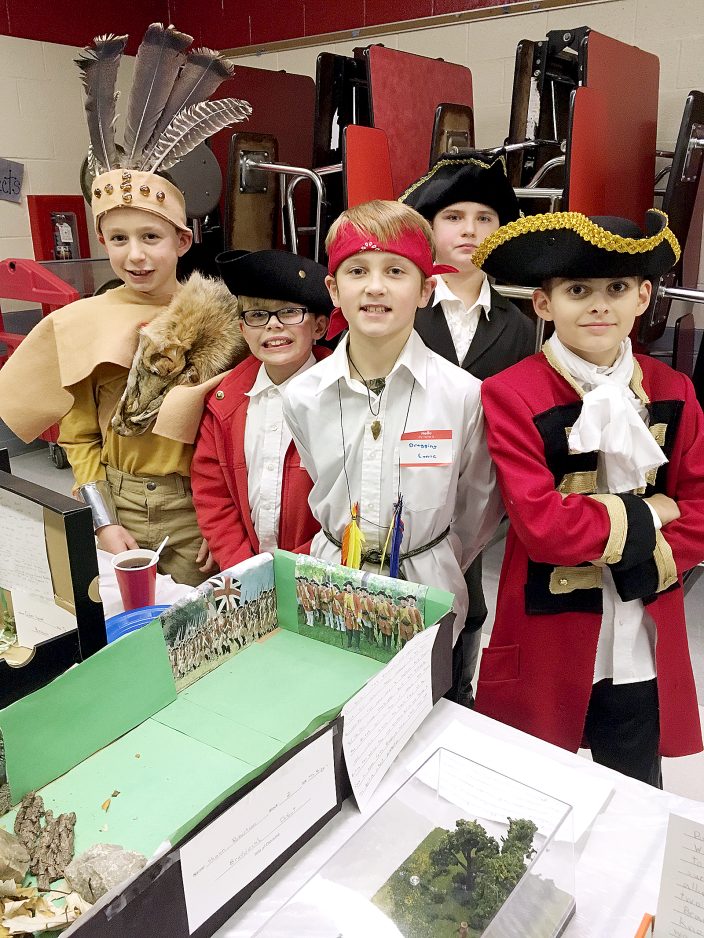 After studying a 25-year span of American history, Laurie Crawford’s fifth-grade social studies students at Fort Cherry Elementary Center completed various projects to further their understanding of the Revolutionary period of colonial America. Their studies of 1750 to 1775 encompassed the French and Indian War, British Road to Victory, Colonists speaking out, the road to war, and the Second Continental Congress.