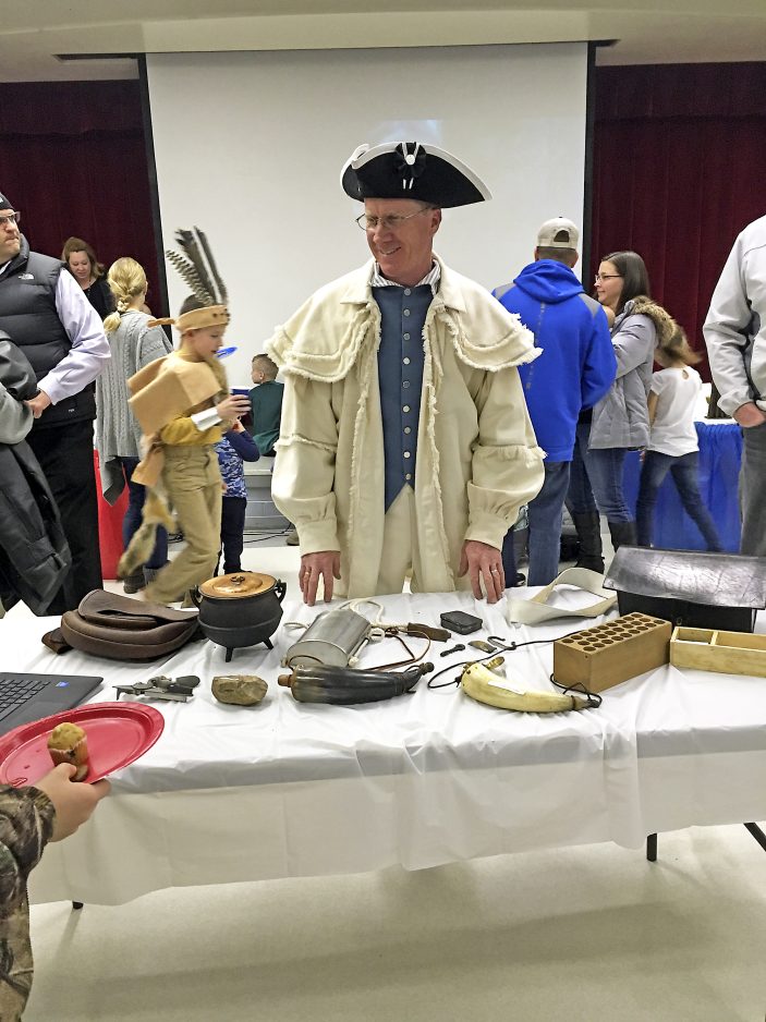 John Bigi, dressed in period costume, presented aspects of colonial muskets.