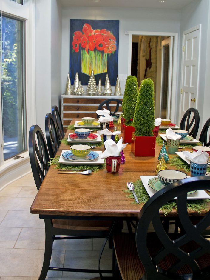 “We had a huge oak tree that needed to come down, and I said to Lyle, ‘Can you make me a kitchen table?’ We designed it together, and he just did a beautiful job,” the owner explained.