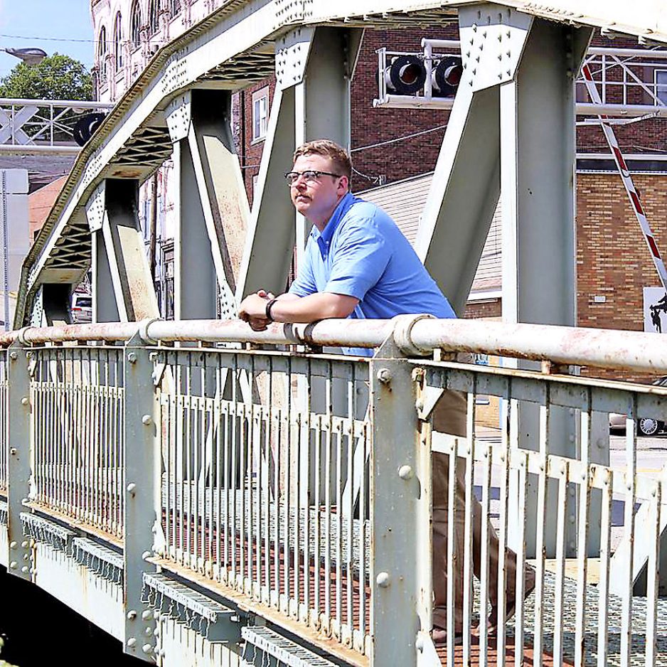 Garrett Titlebaum stands on the South Central Avenue bridge in Canonsburg over Chartiers Creek. The bridge has since been replaced.