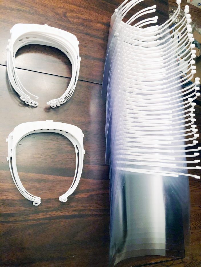 For anyone who wants to print the face shield, the model can be found at www.thingiverse.com/thing:4241798.