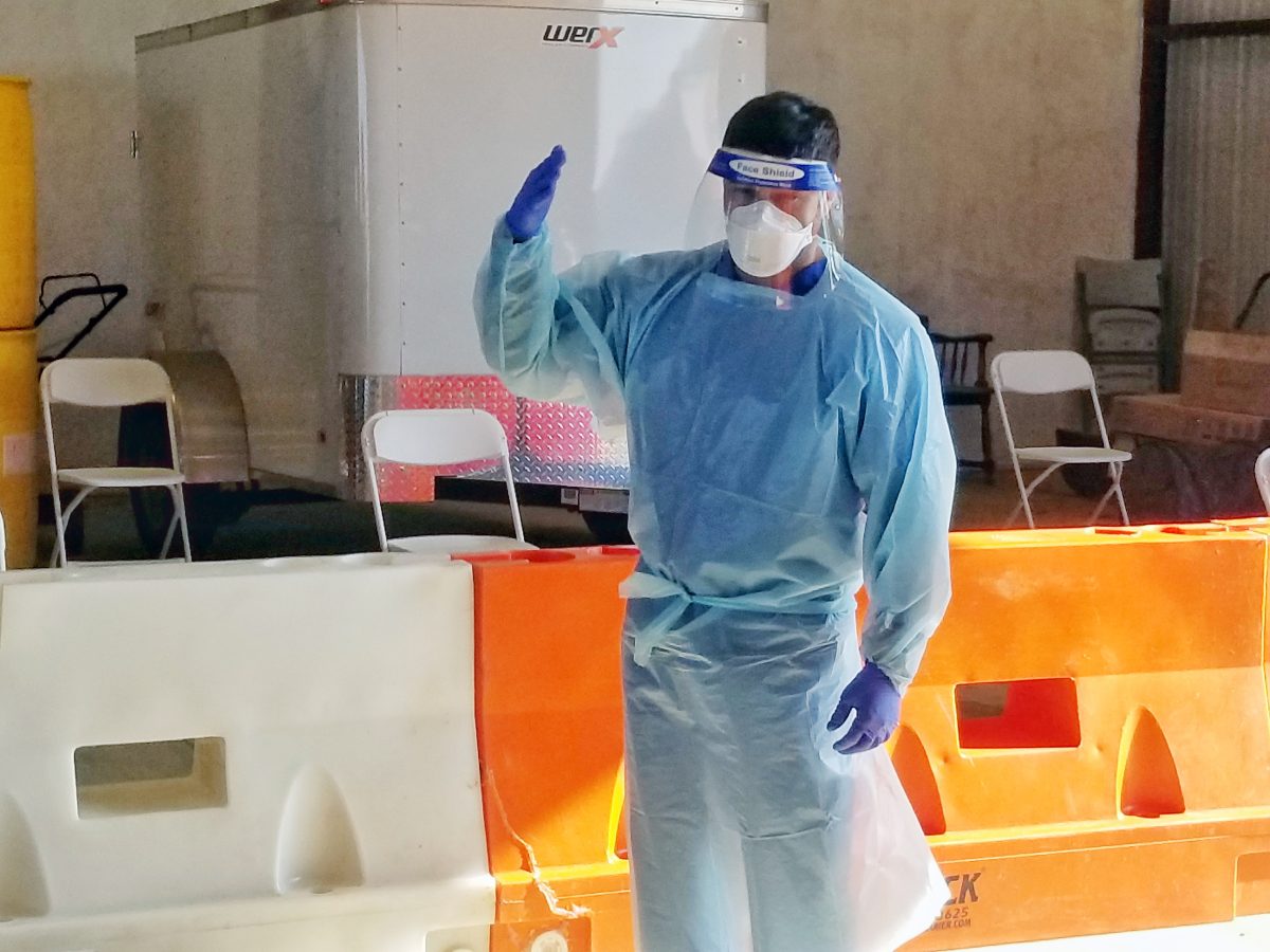 In the three hours after opening at 9 a.m., more than a hundred cars had rolled through the temporary testing site located inside one of the airport’s hangars as a team of medical professionals from AMI Expeditionary Healthcare administered nasal swabs to test for the coronavirus.