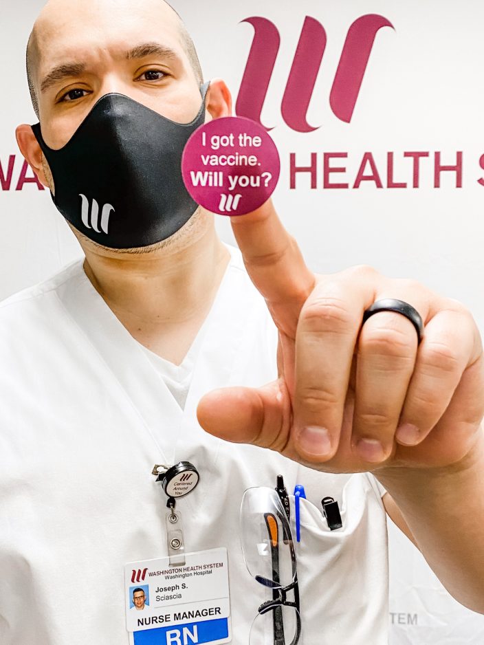 J.T. Sciascia, Emergency Services Nurse Manager at WHS Washington Hospital, was the first to get the Pfizer COVID-19 shot, one of two doses required.