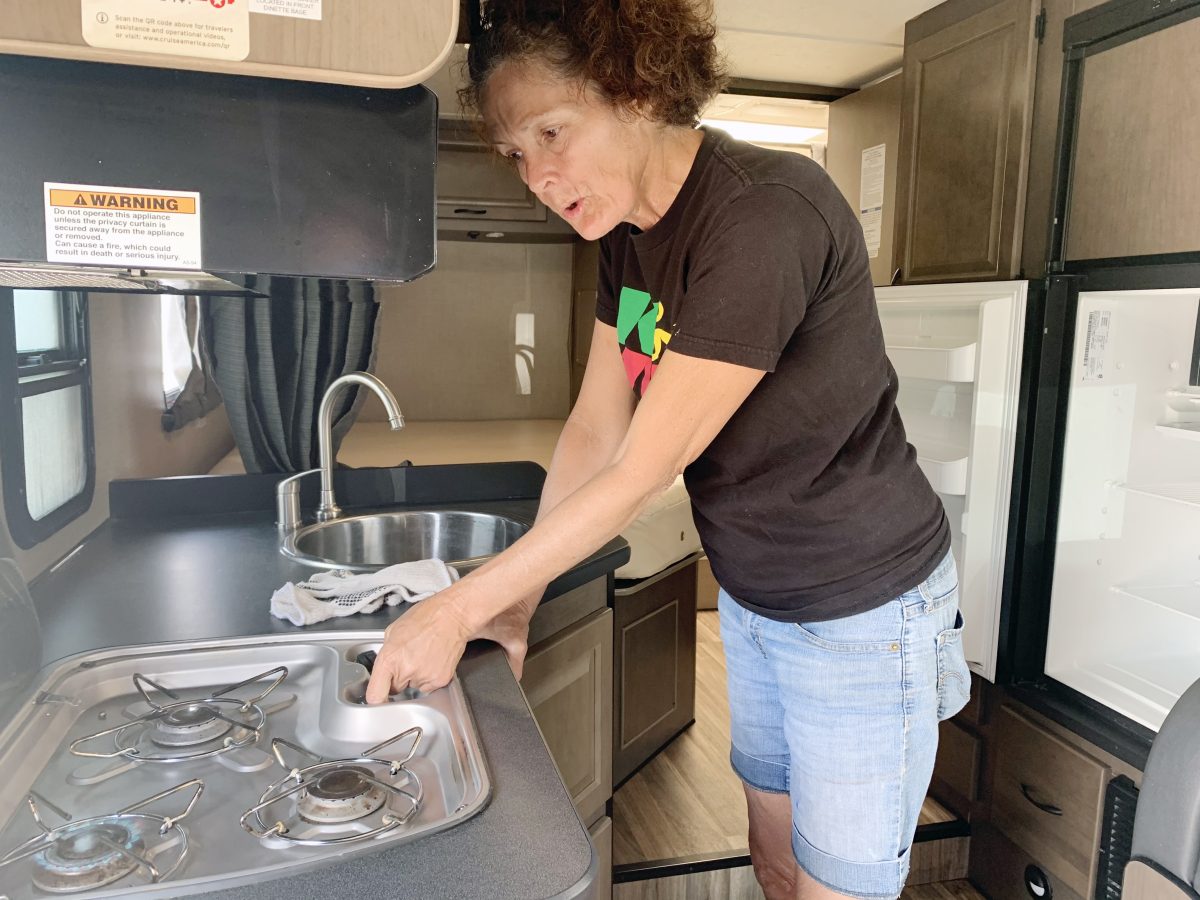 Amy Shoemaker, a retired nurse who cleans and disinfects the RVs at Miley, said the couples and families have steadily dropped by the shop to check out floor plans of the Class C vehicles, ask questions, and make sure the vehicle accommodates their travel needs.