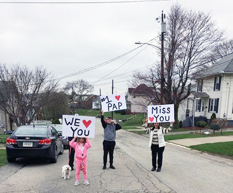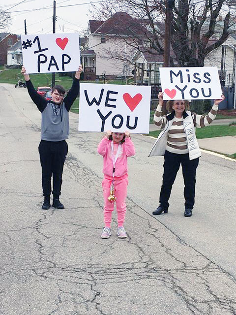 On Tuesday, Daria and her family made large signs to show Donald from outside his room. The nurses, Daria said, instructed them to walk up Leet Street in order to be visible from Donald’s room. After two days, he finally got to see Darlene, Daria and his two grandchildren, Ryland Wasac, 12, and Dominica Childs, 7. They even brought along his dog, Dino.