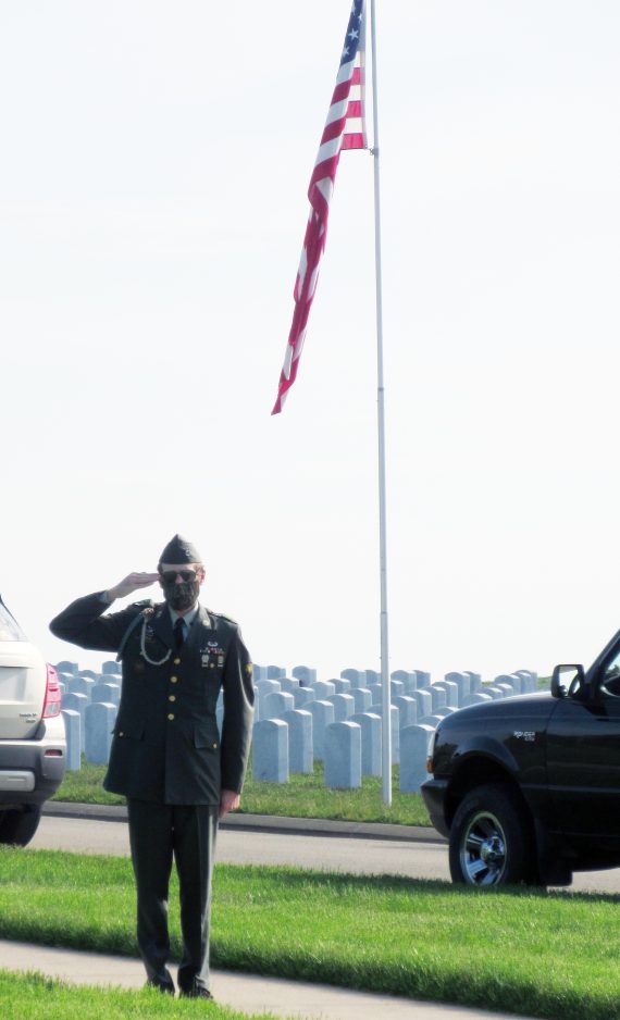 A veteran salutes during the playing of “Taps” while attending a Sunday morning Memorial Day ceremony at the National Cemetery of the Alleghenies in Cecil Township.
