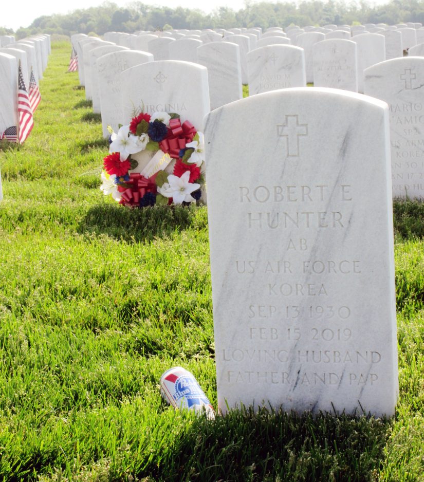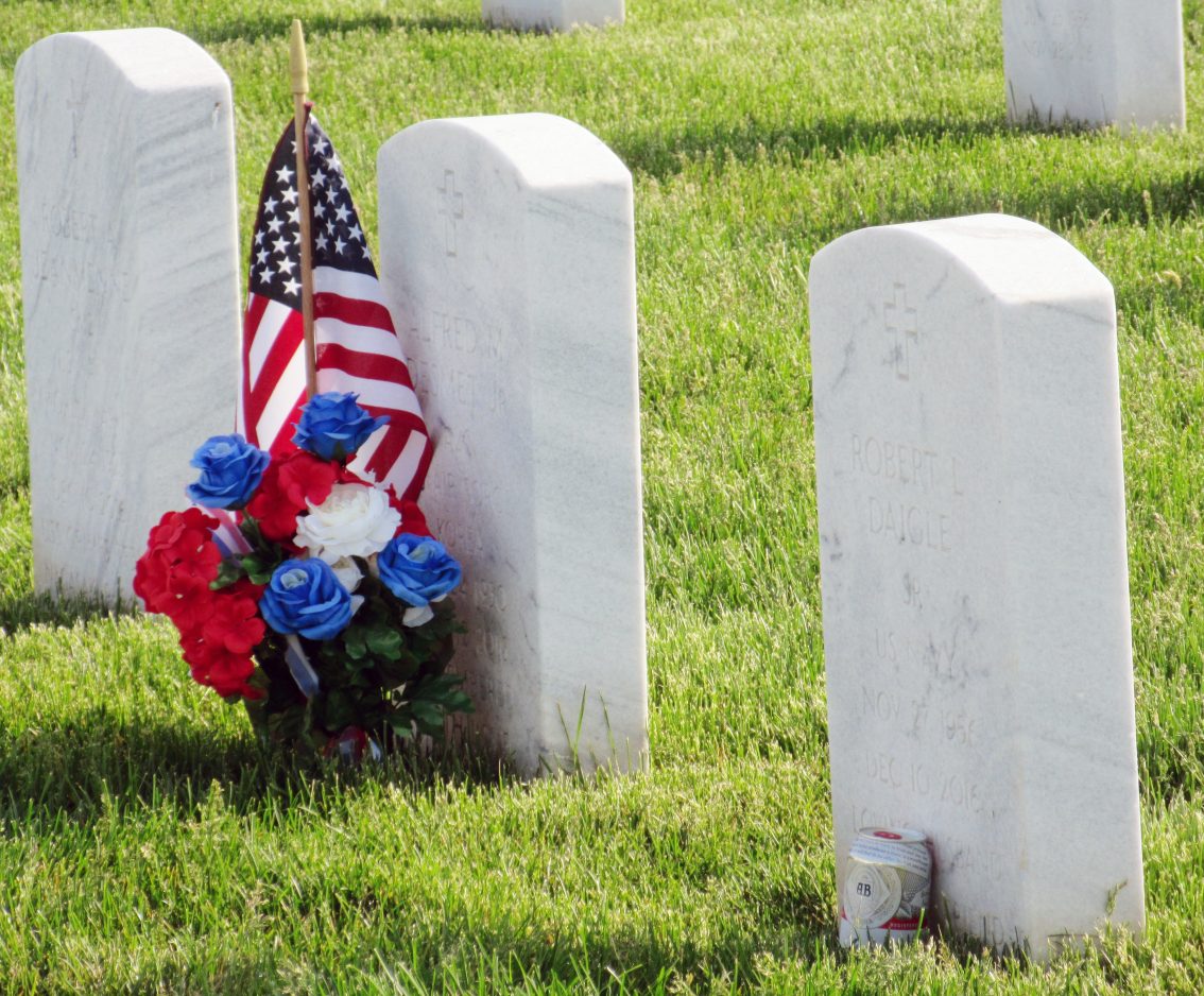A loved one shared a beer at this veteran’s grave over the Memorial Day weekend at the National Cemetery of the Alleghenies in Cecil Township.