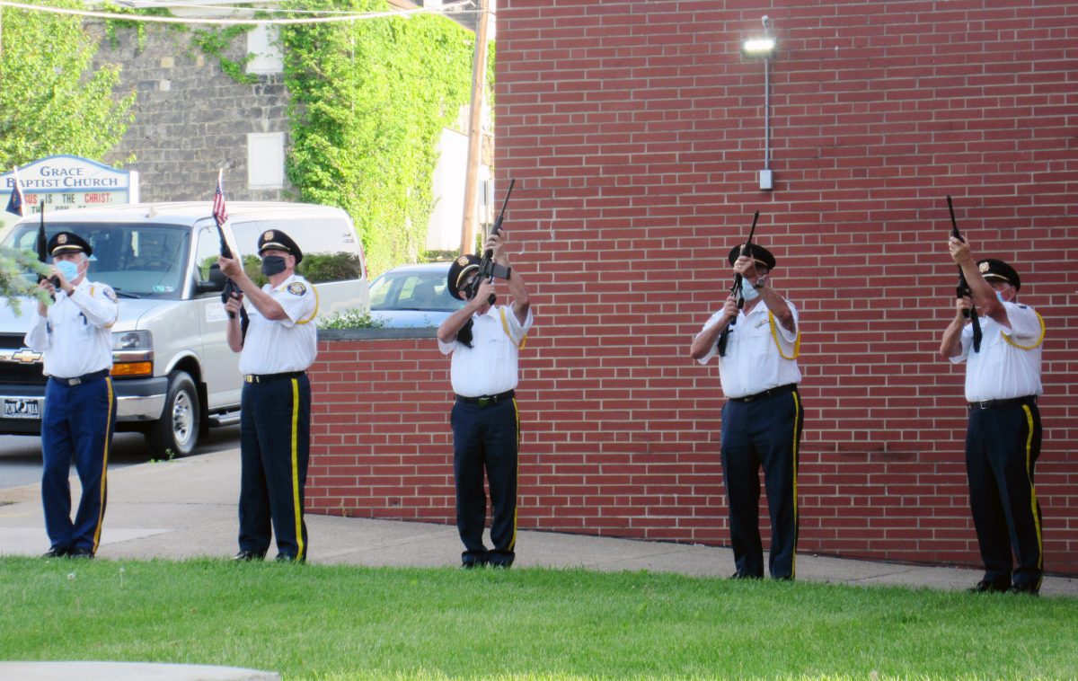 They repeated the brief ceremony in front of the borough building, for which the borough fire department joined them. The group then drove to Oak Spring Cemetery, where they performed the service a third time.