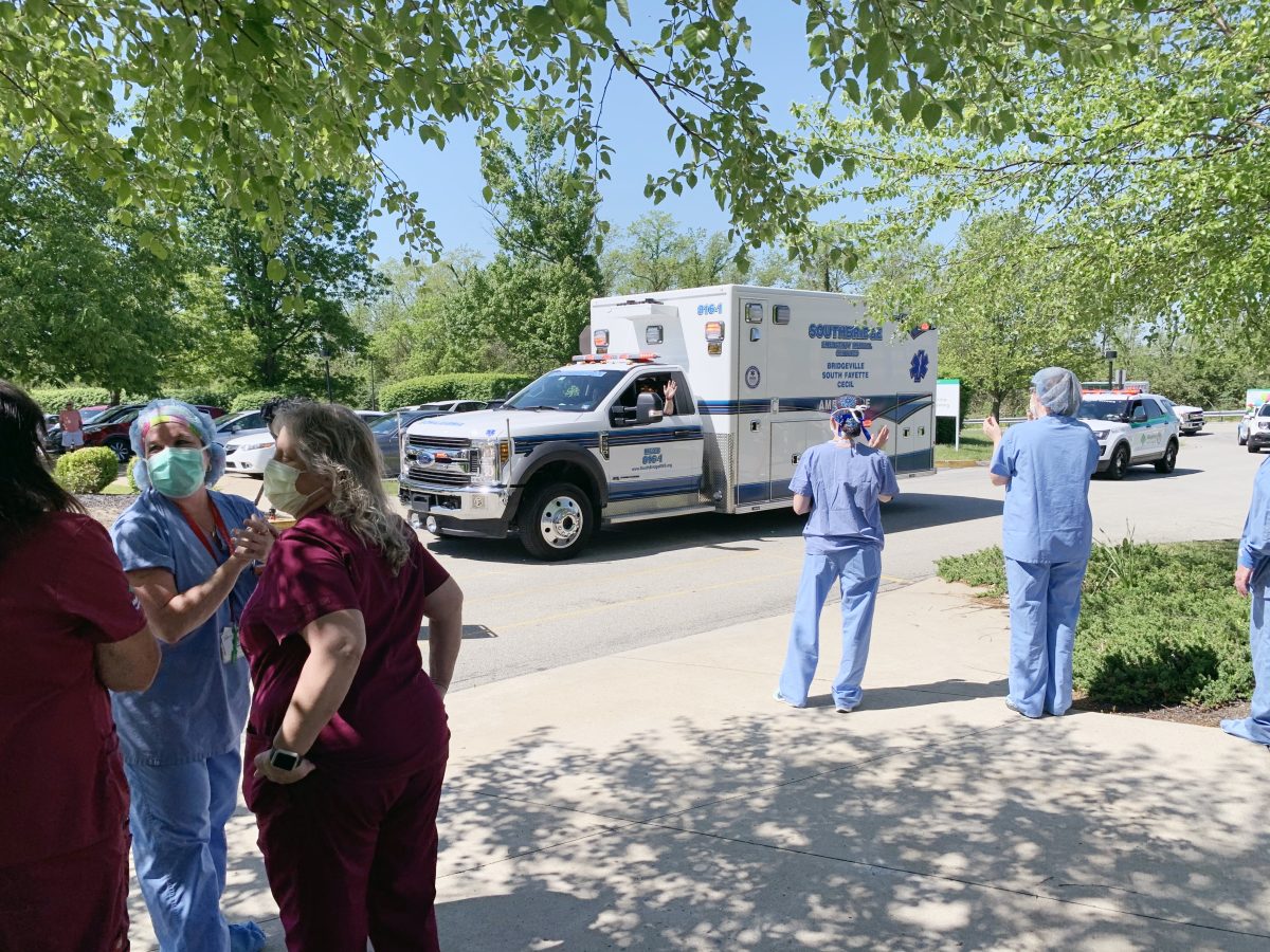 “We had kind of been thinking of a way that we could thank the employees of the hospital, so we decided we’d do a parade. We have a great relationship with them, and we can’t thank the hospital caregivers enough for their remarkable dedication and unwavering commitment to the health and well-being of our community,” said Grimm.