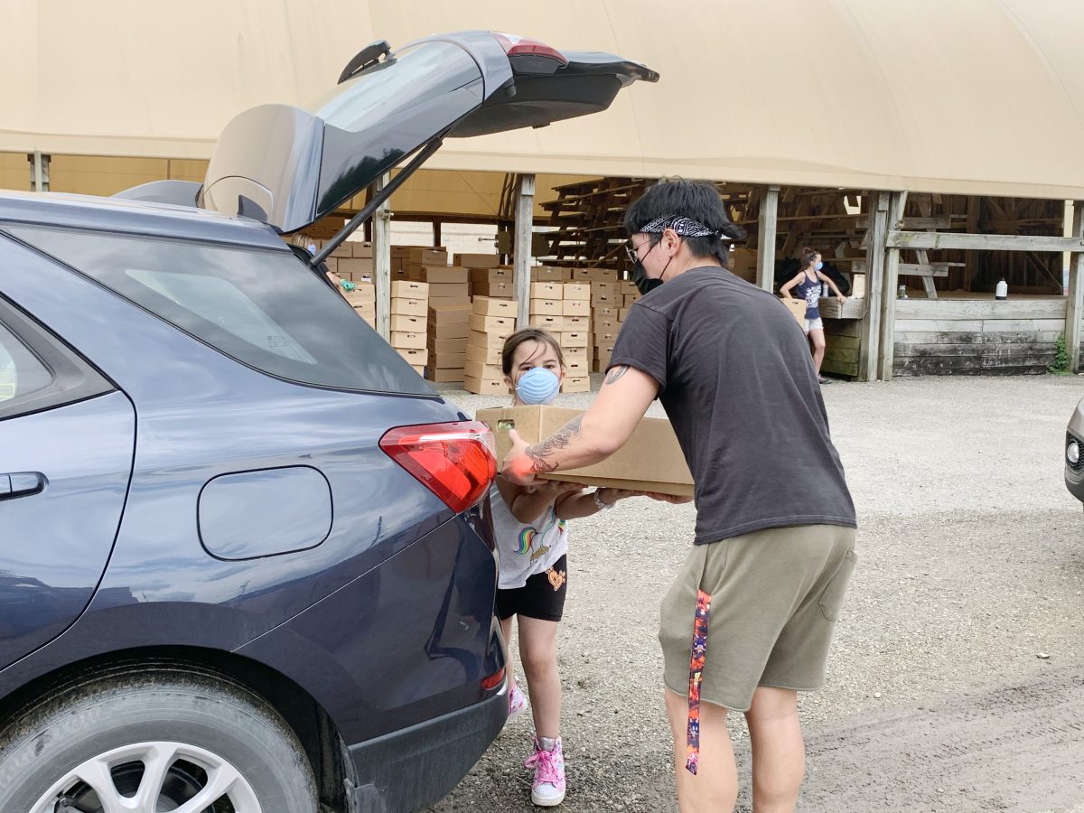 Each car received a box full of dairy and produce items from local donors Schneider’s Dairy and Chelan Fresh, available through the USDA’s Farmers to Families Box Program.