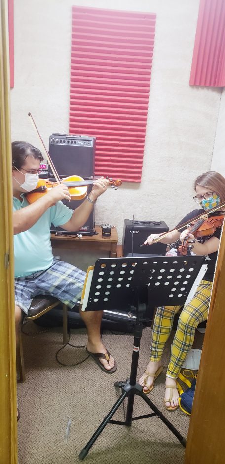 Joe and Sonya give lessons along with visiting instructors. Joe Reihner specializes in string instruments – guitar, violin, banjo, bass, mandolin and, on rare occasions, the harp. Sonya teaches flute, which pre- and post-pandemic are best conducted in soundproof rooms in the back of the building.