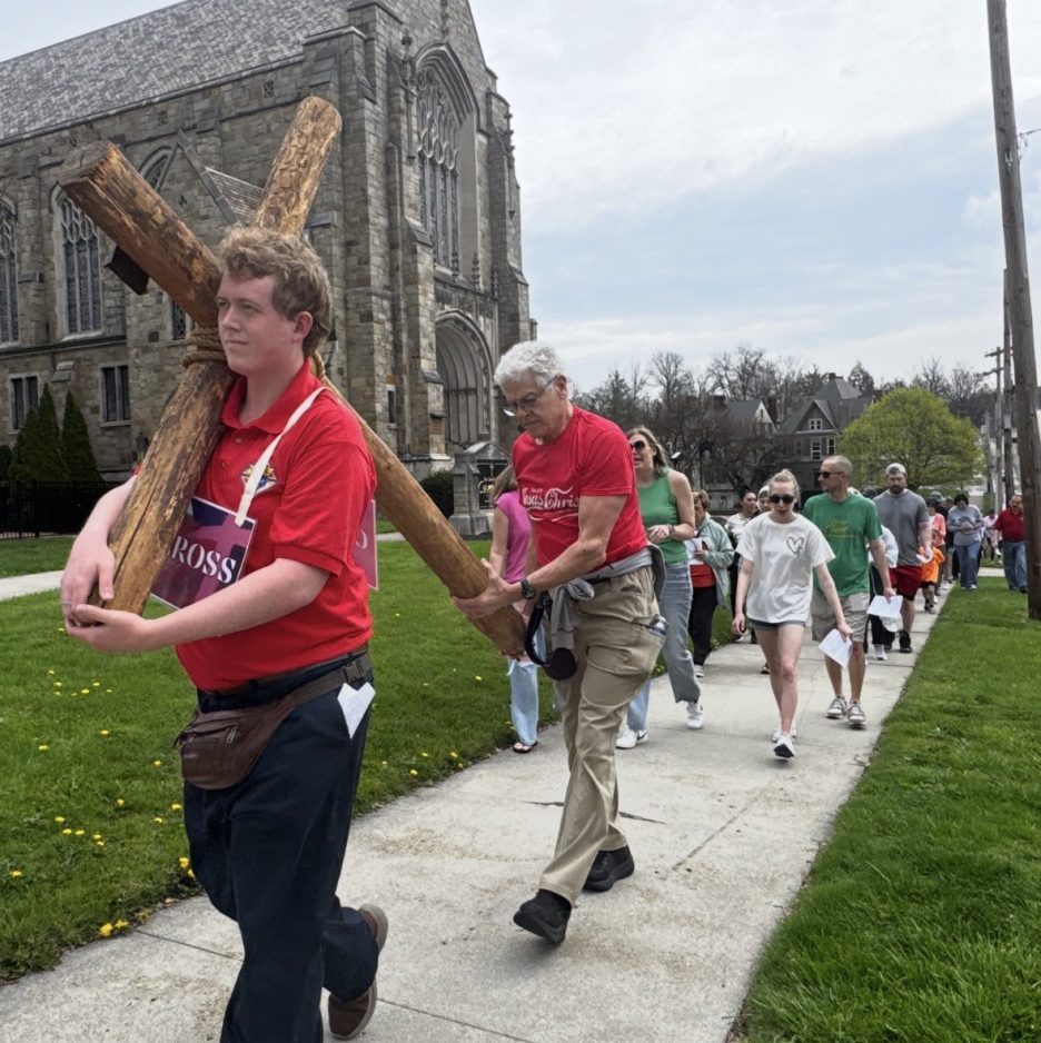 Trailing behind two volunteers shouldering a life-size cross, more than 100 members of St. James Parish and Church of the Covenant in Washington trekked six blocks, passing by several of Washington’s churches during an event that has become an annual tradition.