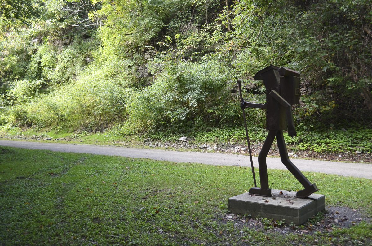 The Walking Man statue on the Greene River Trail.