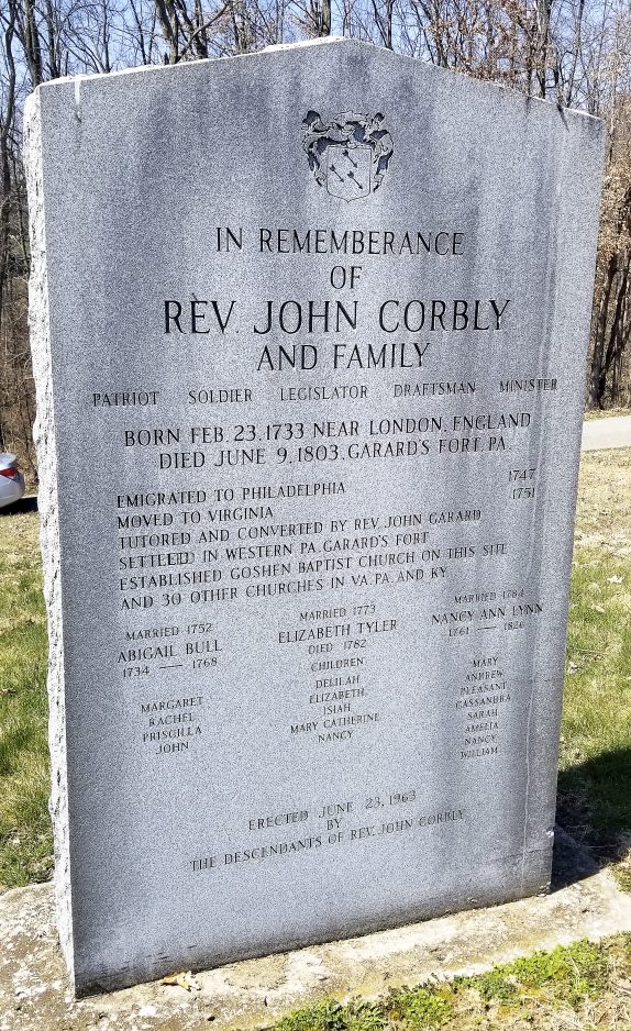 Corbly established 30 Baptist churches in the western parts of Virginia and Pennsylvania, and that barter system helped to pay many preachers at the time, says William Miller, a Garards Fort native and Corbly descendant.