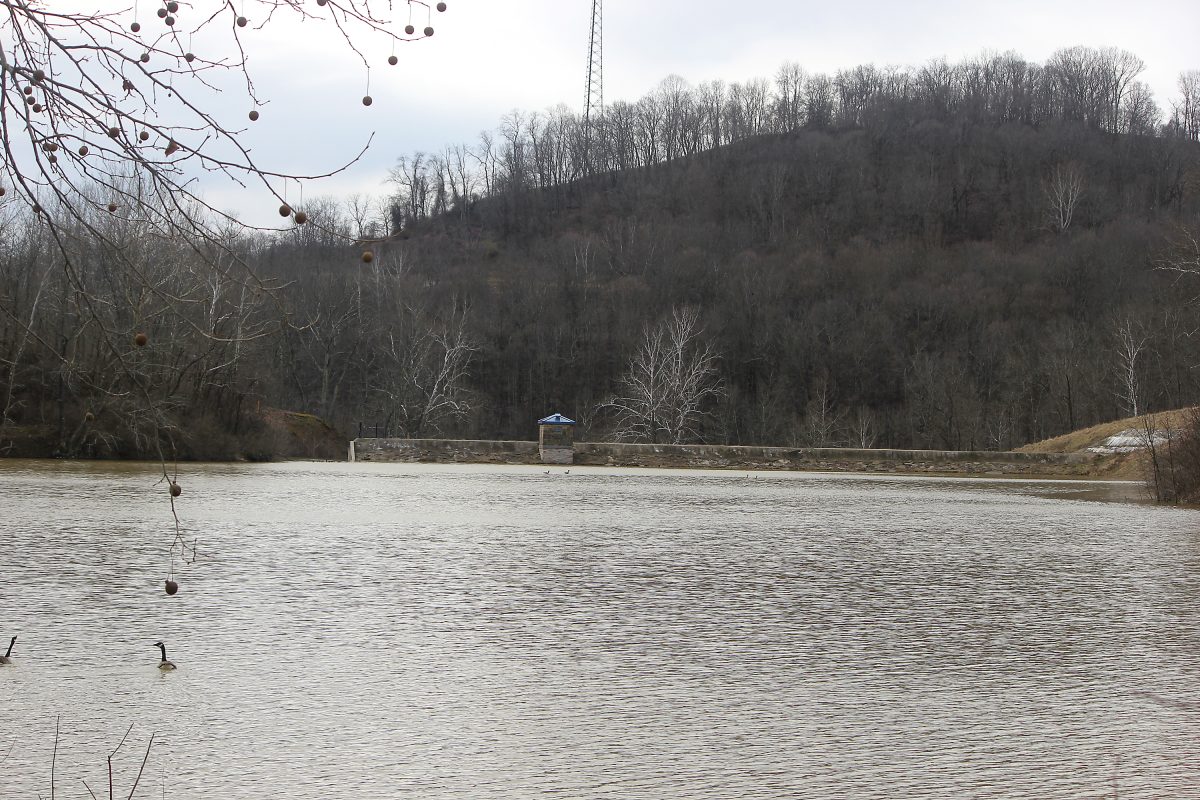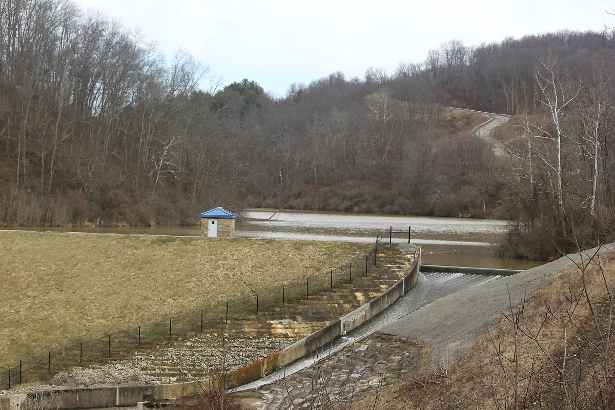 The dam and spillway at Wisecarver Reservoir near Waynesburg