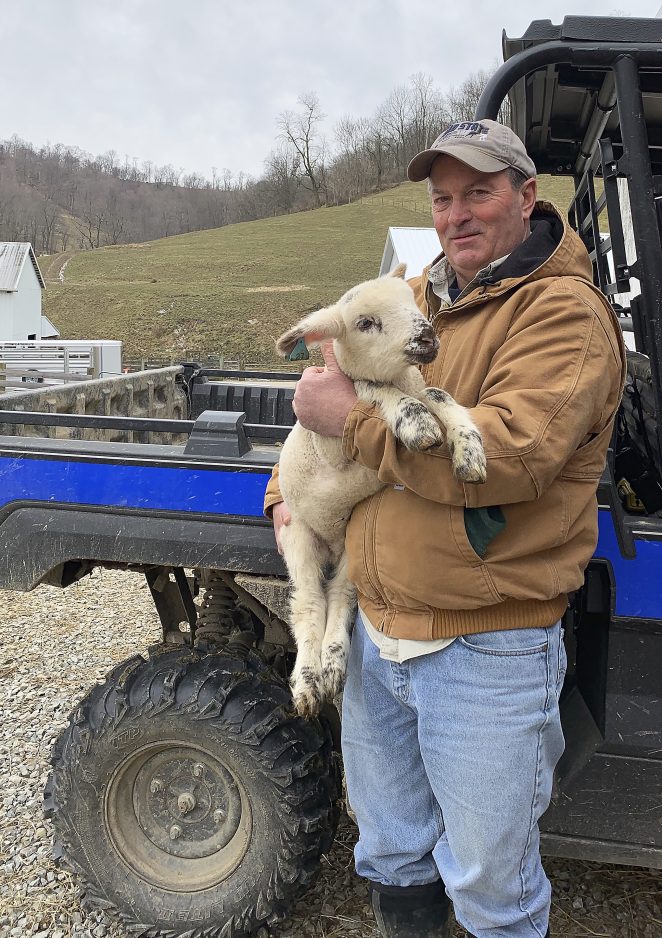 Curt – no one calls him Curtis! – Hughes is a farmer’s farmer. Whether he’s out standing in his well-limed and fertilized fields – rich with grasses whose deep roots fend off erosion – keeping a weather eye on the calves being born, or inspecting this year’s bumper crop of lambs in the barn, you can bet this still-trying-to-retire West Greene vo-ag teacher is doing it right.