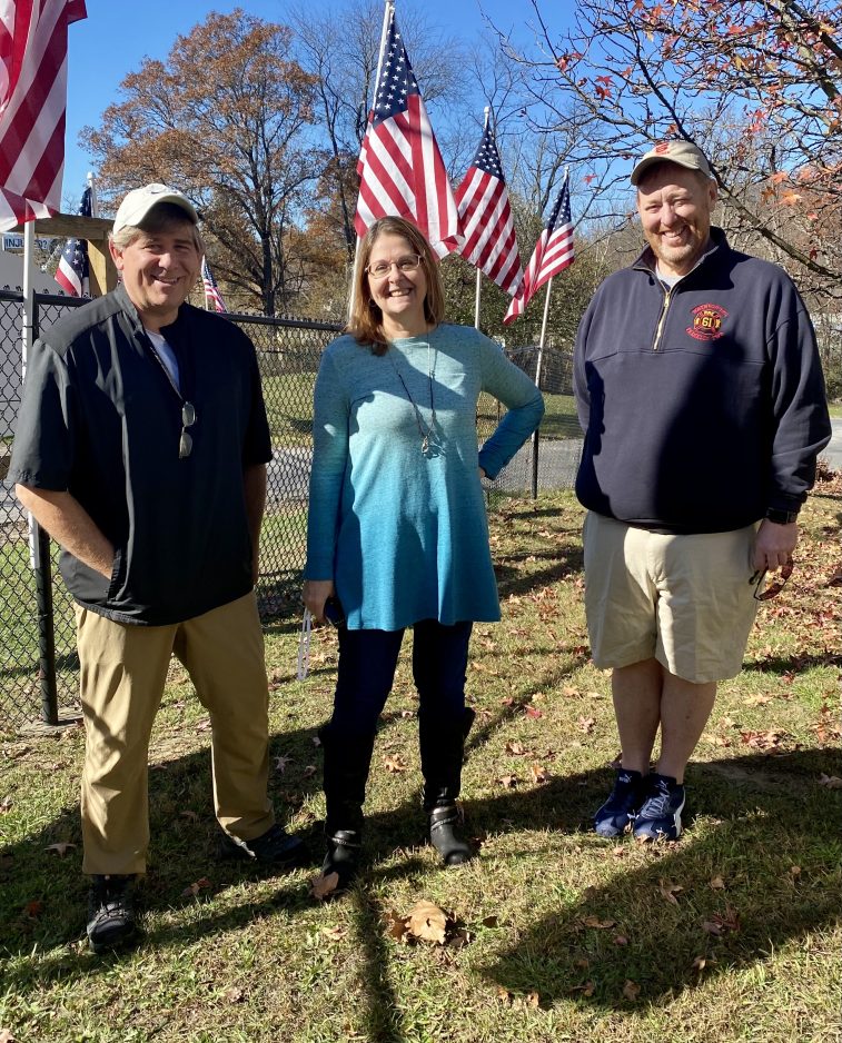 It’s just another day in the life of Melody Longstreth, executive director of Greene County Chamber of Commerce. She’s standing between County Parks and Recreation manager Brett Moore and Waynesburg Fire Chief Jeff Marshall on the Greene County Fairground’s woodsy edge where it stretches along State Route 21. It’s a summery November morning, and Flags for Heroes are making an All American backdrop for this defining photo of three friends in action, making plans to save Christmas from the COVID-19 Grinch.