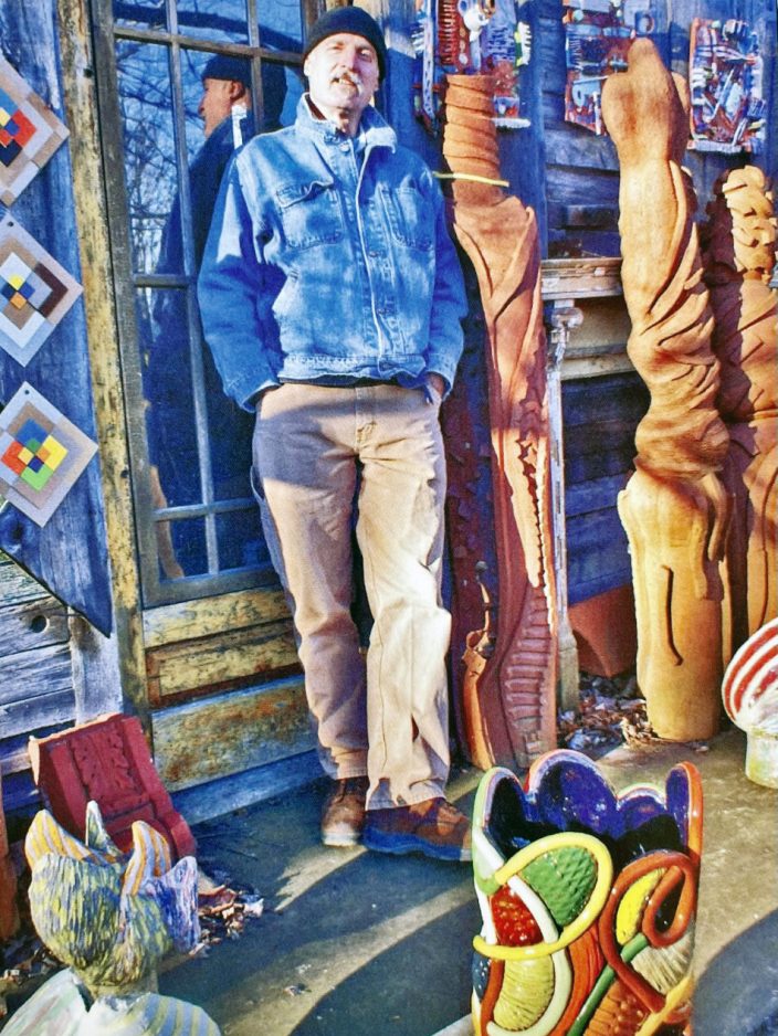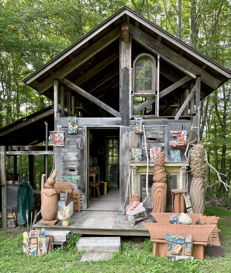 As I browsed and remembered, the beautifully whimsical “club house” Kyle built when he ran out of room for his work stopped me in my tracks. It was decorated inside and out with decades of creative output, happily showcasing Kyle’s skills as an artist and a carpenter with an eye for the wonderfully improbable. Kyle stood in that doorway ten years ago, smiling at me as I snapped the photo for the article I would write. In a few short minutes, friends would be removing the pieces one by one, but for this moment, it was all Kyle, a picture-perfect image filled with details that felt fresh every time I looked at it. The empty doorway grinned back at me as I took the shot.