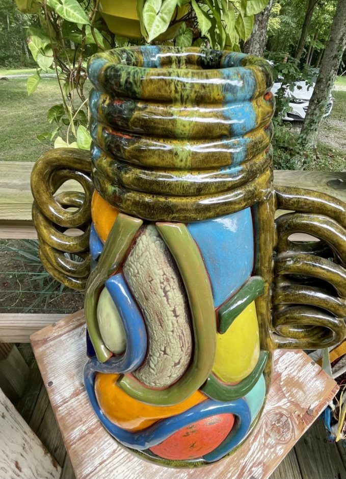 “Kyle was happiest when making art and he was always making art,” retired Waynesburg University ceramics department head Susan Phillips said. She met Kyle in the mid-1980s when he returned to Waynesburg after attending four different colleges, including the University of Colorado and Alfred University in New York, noted for its focus on clay. His quest wasn’t for a degree but to find mentors to perfect his craft. After renting a studio in the old Armory on Cherry Alley, Kyle approached Phillips about renting the college ceramic studio for the summer and began producing works with natural textures and bright colors that would become his trademark.