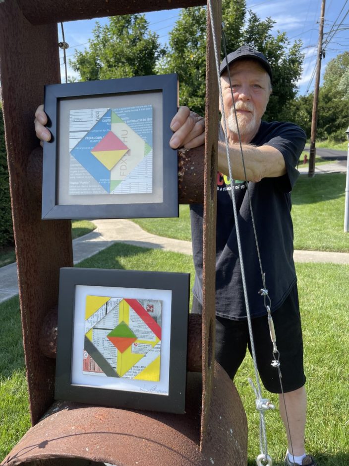 Turning recyclables into art then became a unique teaching tool when Hallam wrote and received Sprout Grant funding in 2011 to bring art to Greene ARC consumers and give them new avenues of expression. Under his journeyman’s eye, those who participated learned to safely cut squares and triangles from salvaged materials then reassemble them into patterns of their own making. It was a newsworthy venture and a chance to show the world the difference an artist can make, both in individual lives and in the community.