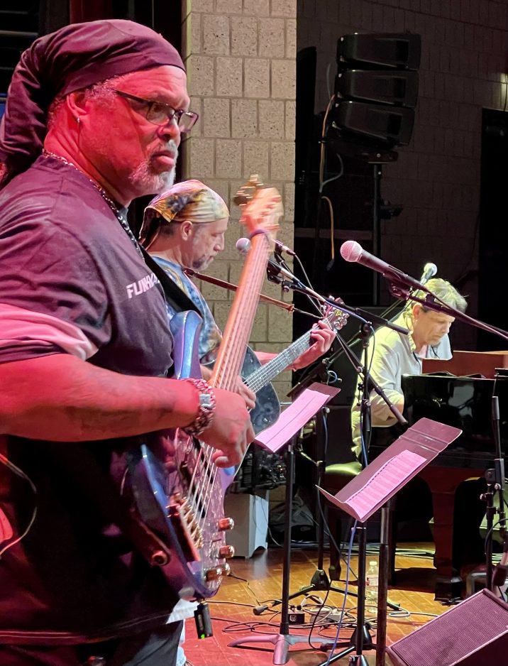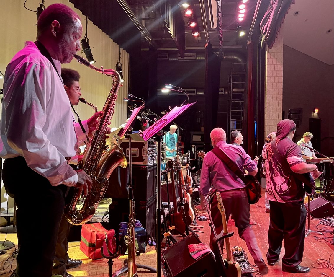 The bluesy jazz power of the horn section goes back to Bruce Johnson, who joined the band as a freshman in 1974 and became the music director for the horns, Molzon said. Johnson brought in Lee Robinson from Pittsburgh to become the band’s featured saxophonist. Johnson died in 2015, but Robinson stayed on to add wow to the party. His son Zevn attended his first GNP concert as an infant in 2002, came back to play at age 16 and now, at 20, was here to jam with his dad.