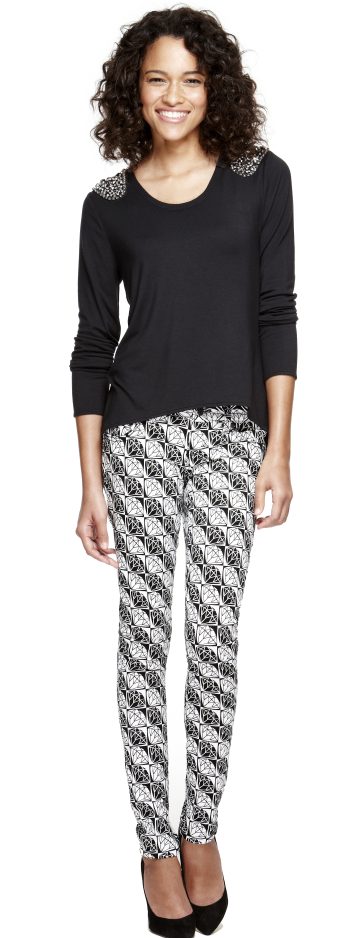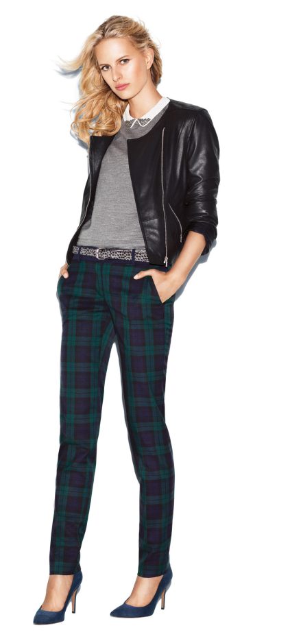 She can break away from leggings or skinny jeans – or at least try them in prints – and she should try the relaxed track-pant silhouette that has broken out as a trend, says Lepore, who designs a youthful line for JCPenney called L’Amour. “It’s going to be a little bit of a leap for her, but she’s going to get the coolness of them.”