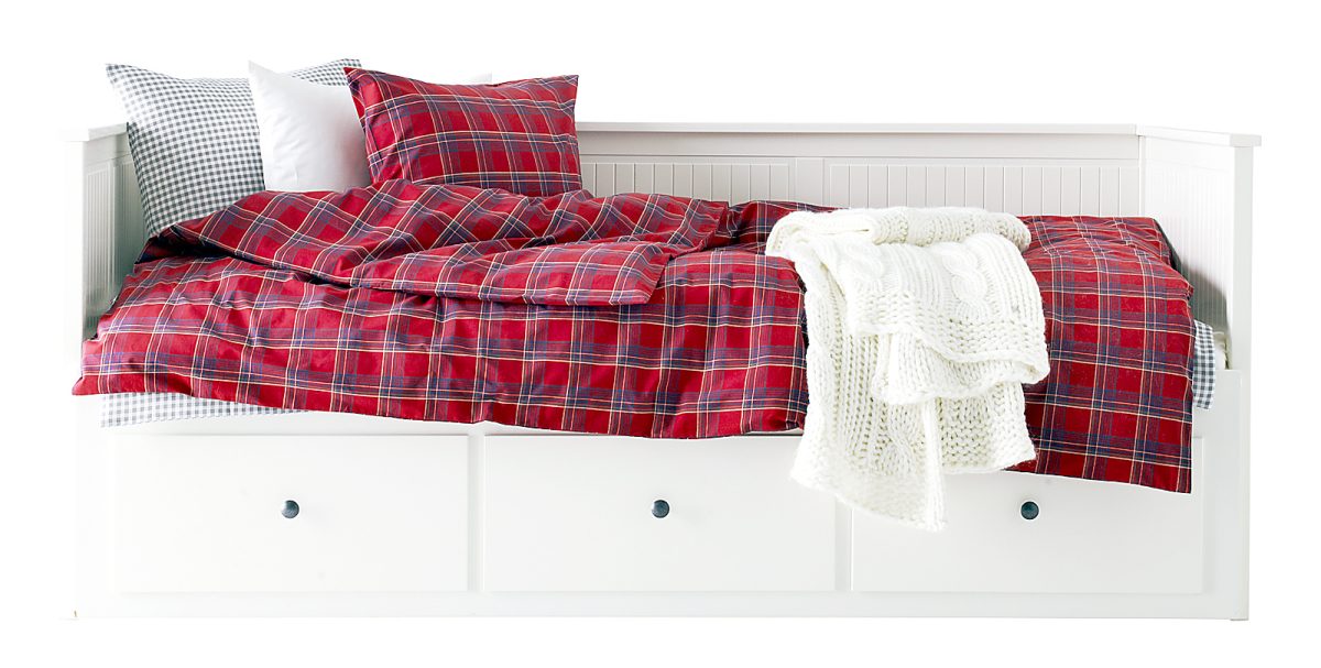 North Pole flannel bedding from Garnet Hill depicts Santa’s snowy home complete with cocoa stands, reindeer barns and sled shops. Ikea’s Annbritt collection includes woolly blankets, plaid cushions and duvet covers in rich reds. (www.garnethill.com ; www.ikea.com )