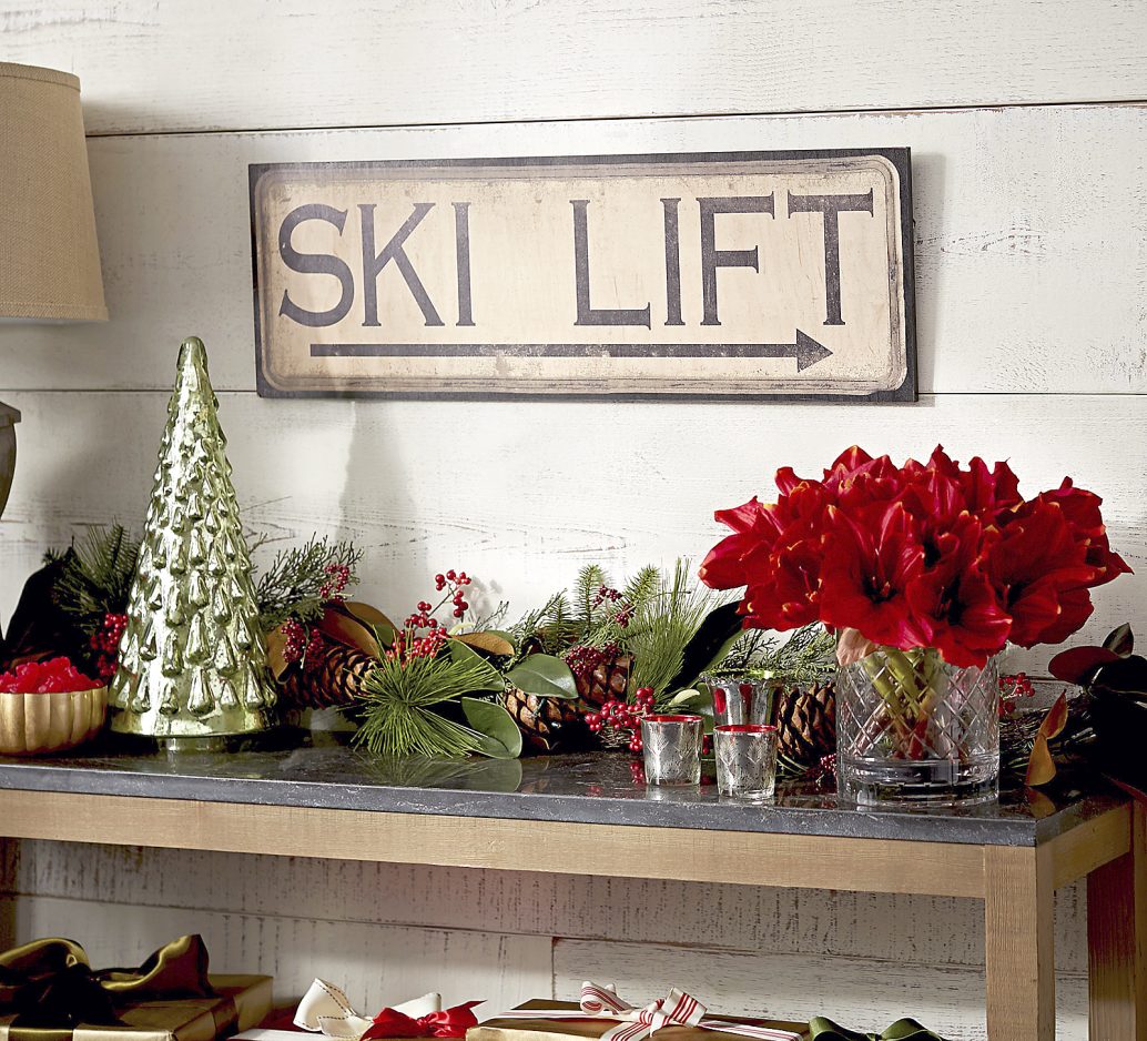 Or consider a bronze-finished ski door knocker or a retro-style “Ski Lift” sign, as well as ski tourism posters and throw pillows with 1940s-era, ski-resort postcard art. (www.potterybarn.com )