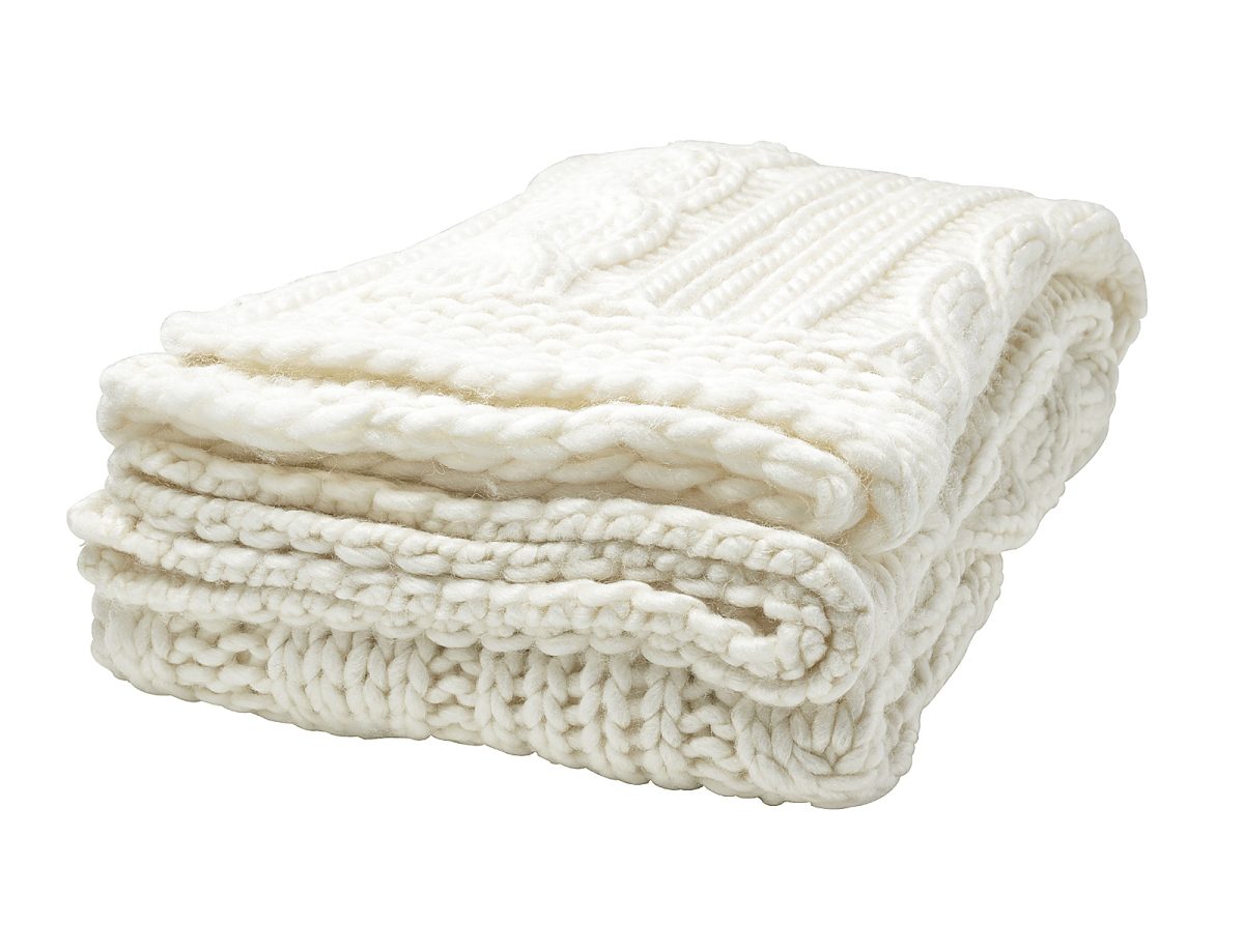 Arhaus has pillar candles in cream and dove gray that are carved to look like cable knit sleeves. Felted throw pillows embroidered with deer, rabbits and other forest friends add charm. Find chunky knit throws here, too. (www.arhaus.com )