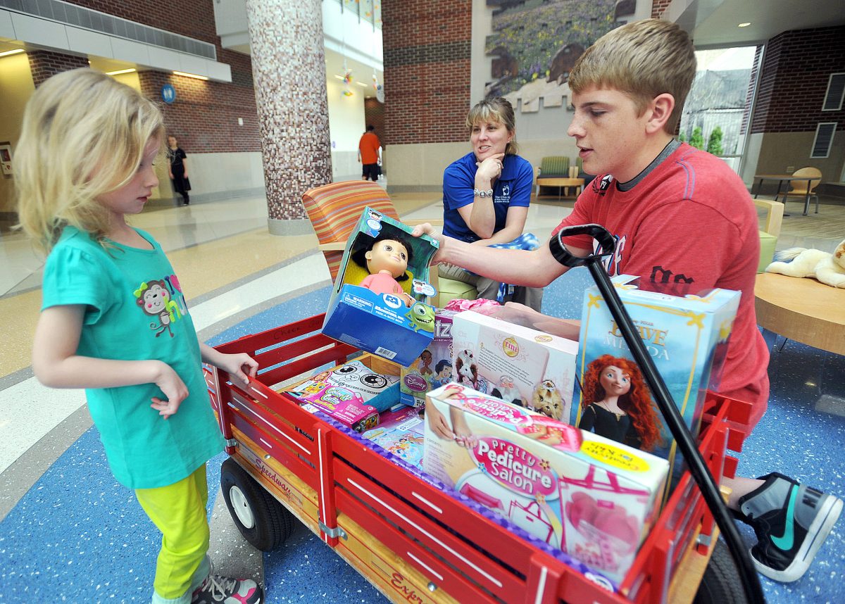 But then Cayman’s football teammate in the Center Grove bantam league, Tyler Genneken, was diagnosed with leukemia. While visiting Tyler at Riley, Cayman noticed a broken PlayStation controller in the toy room. So he set out to raise money to buy new toys.