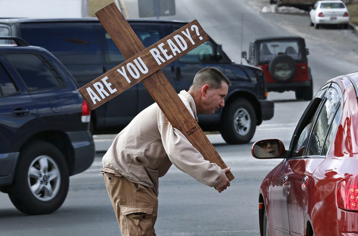 Cabral seems unfazed. He’s “indigenous,” he explains, a native of nearby Somerset. He’s so eager to share his faith that he regularly carries a wood cross asking, “Are You Ready?” to a traffic island in this southeastern Massachusetts city and evangelizes to anyone who rolls down their window.