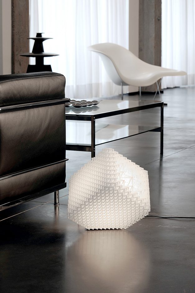 Belgium’s .MGX by Materialise, a pioneer in 3-D printing, is known for museum-quality, futuristic designs. Among the most popular is the Bloom table lamp (about $2,600), a flower-bud inspired design with joints that you can expand or collapse to release or contain light, says marketing manager Katrien Vandenplas.