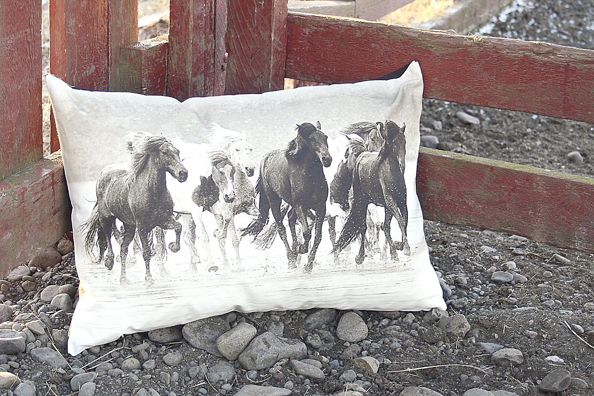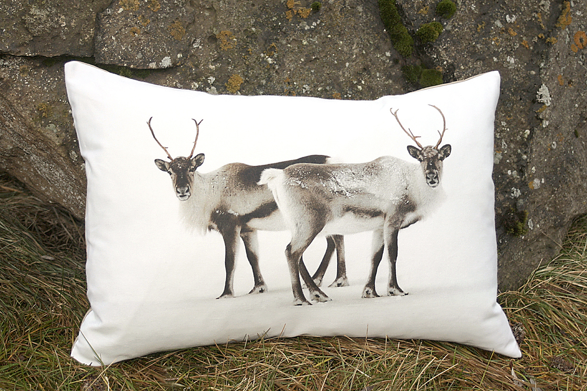 Design studio Lagdur creates evocative photo-printed pillow covers of ptarmigan, fish, Icelandic horses and other scenes from nature. (www.alafoss.is )