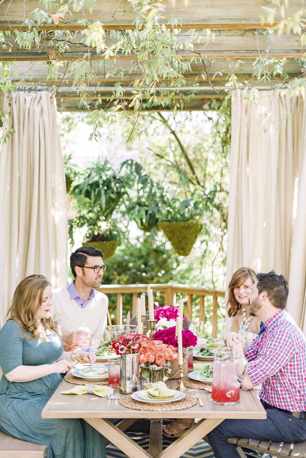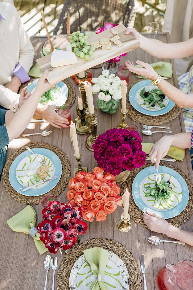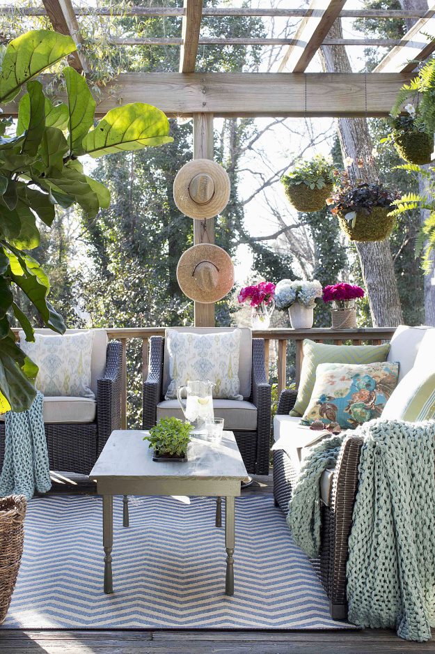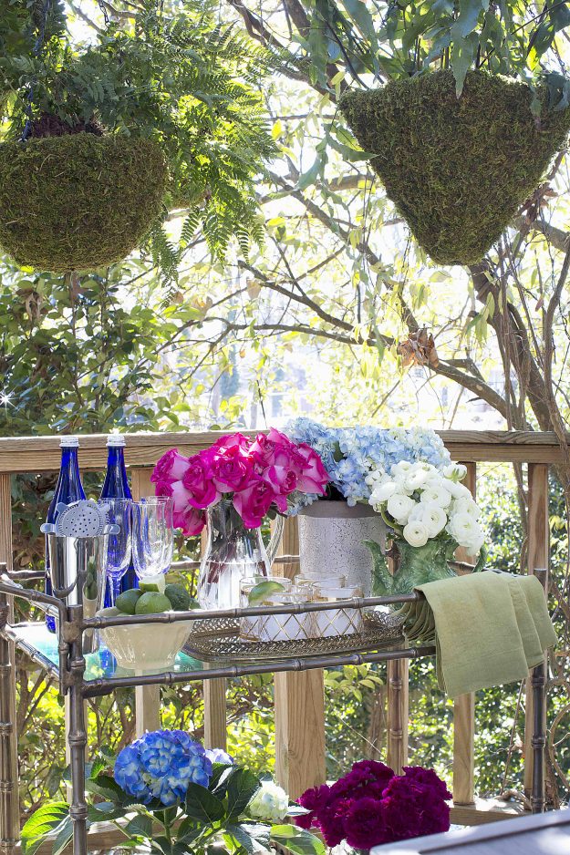 He also suggests adding a mobile bar cart to serve as a cocktail station or as a spot for serving dishes. It brings a bit of indoor style, and can easily be brought inside during bad weather.