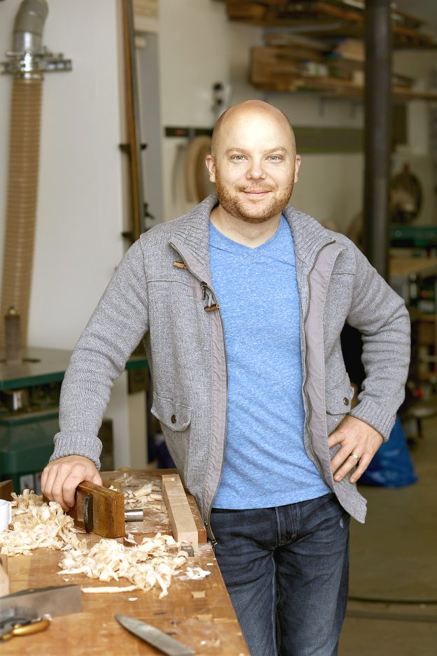 Canadian Kino Guerin manipulates panels of walnut, wenge, cherry or zebrawood veneer into curled and knotted ribbons that become art, shelves or tables.
