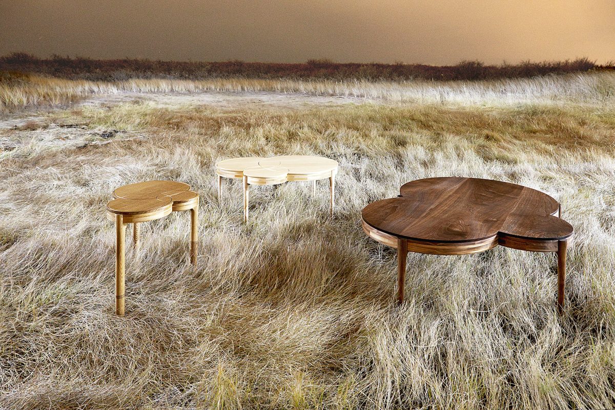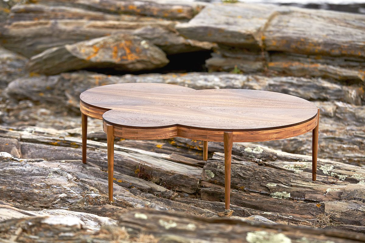 Examples of the trend included Matt Hutton’s walnut or cherry coffee table, a group of connecting circles. The Portland, Maine, furniture designer calls the table, which is available in three sizes, “Crop Circles.” (www.studio24b.com )