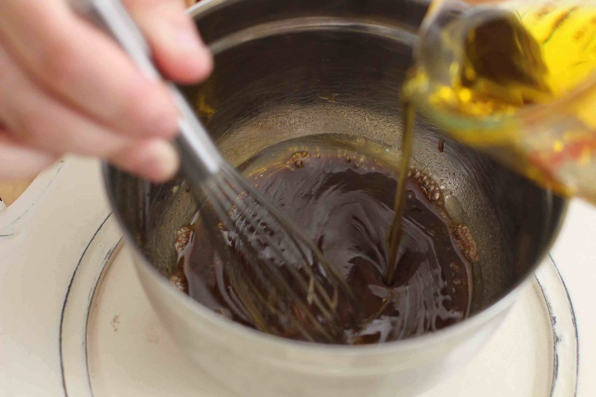 That was an eye-opener! Three tablespoons of oil swamped rice vinegar, but barely balanced the acidity of sherry vinegar. Bottom line: The acid content in vinegars can vary widely, so you’ll want to adjust for that.