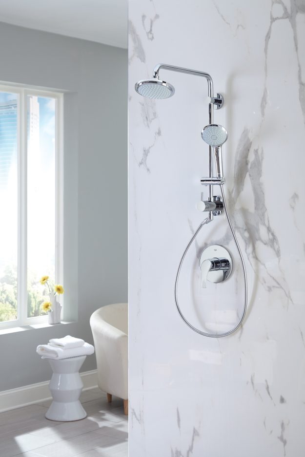 Dixon noted that her company’s Retrofit shower, with exposed piping, lets you change out the whole shower if need be without breaking the wall. “It just fits right onto the existing plumbing,” she said.