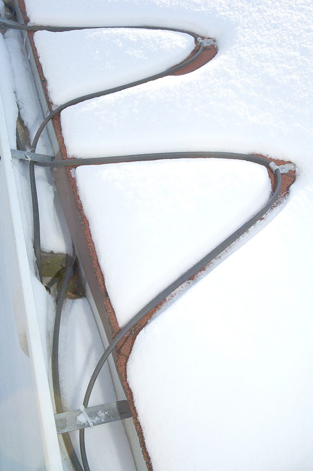 EasyHeat Sno Melter cables can be clipped to your roof, or strung through rebar and layered under hard surfaces like cement and asphalt to maintain a constant temperature above freezing.