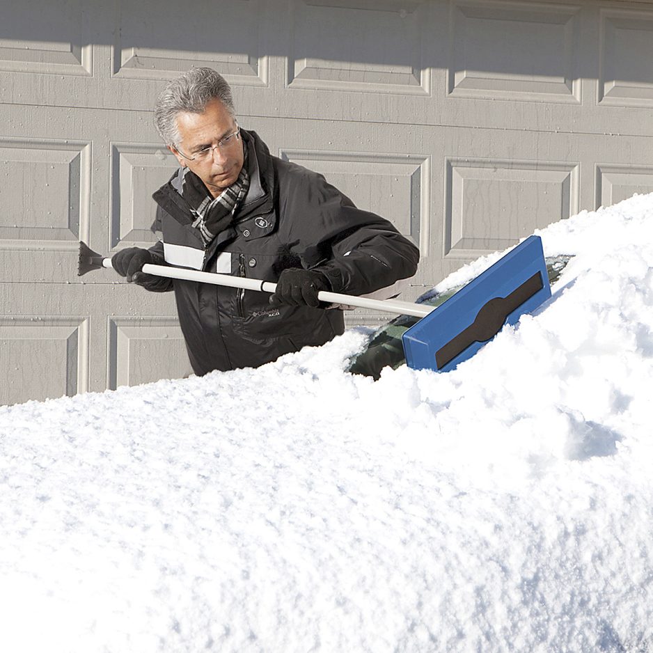Looking for something bigger? Snow Joe offers a snow broom with ice scraper that easily pushes heavy, wet snow off your car hood or roof without scraping the paint. The handle extends up to 49 inches.