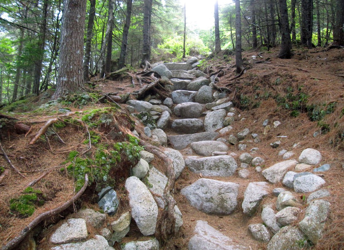 It’s the psychological aspects that are so daunting: fear of falling if you lose your grip on a tiny iron rung in a stone wall with a sheer drop below, and the fear of getting stuck in a crevice. And we didn’t even do Katahdin’s infamous Knife Edge, a narrow ridge with drop-offs on either side.