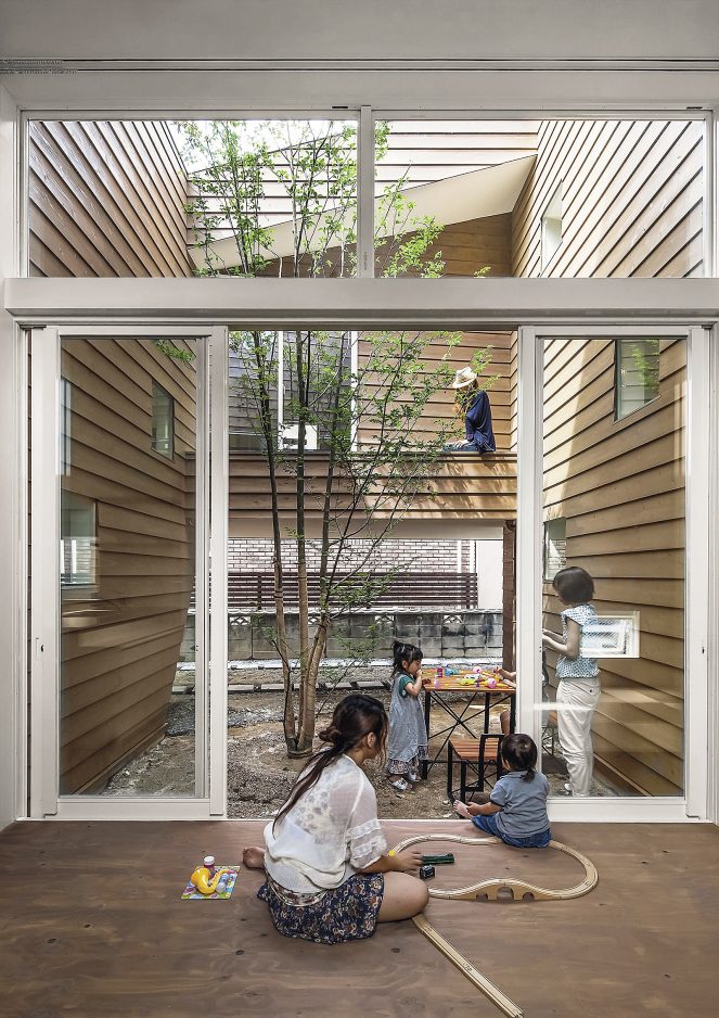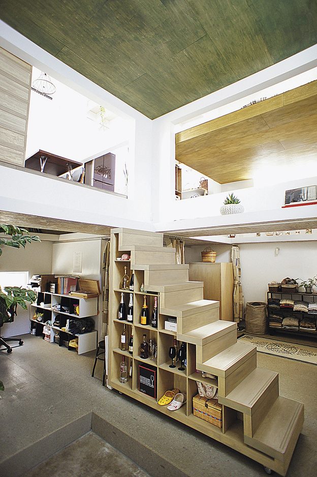 Much as sliding, rice-paper screens traditionally made indoor areas more flexible in Japan, intermediate floor levels and inner open spaces add a feeling of space.