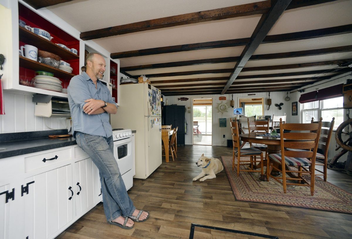 The Blooms’ floating domicile features two bedrooms – the captain’s quarters and the crew quarters – a kitchen, dining and living rooms, and a small workshop Tom Bloom calls “my mini-man cave.”